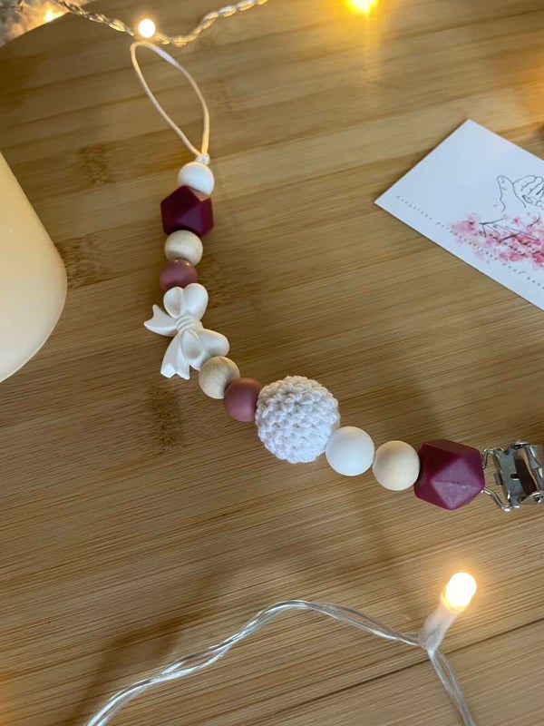 L'attache tétine sert à ne pas faire tomber la sucette, la salir ou la perdre et peut faire un cadeau de naissance unique et original !