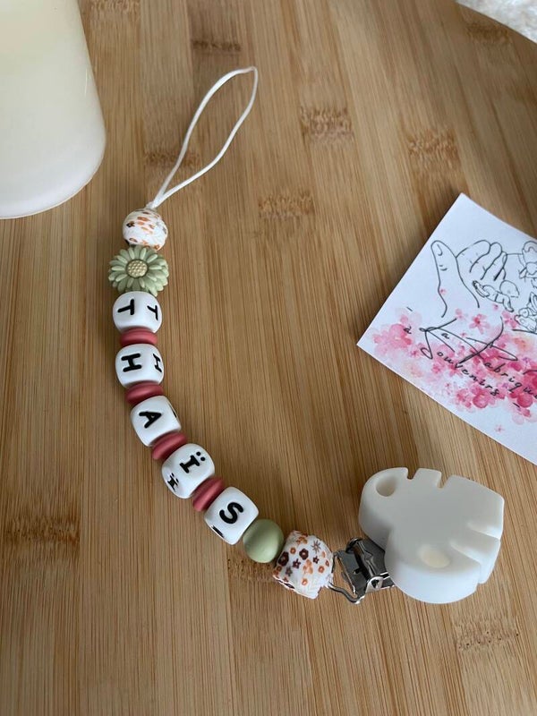 L'attache tétine sert à ne pas faire tomber la sucette, la salir ou la perdre et peut faire un cadeau de naissance unique et original !