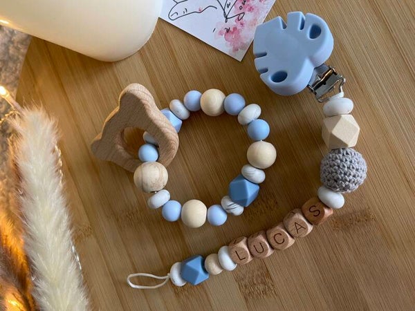 L'attache tétine sert à ne pas faire tomber la sucette, la salir ou la perdre et peut faire un cadeau de naissance unique et original !
