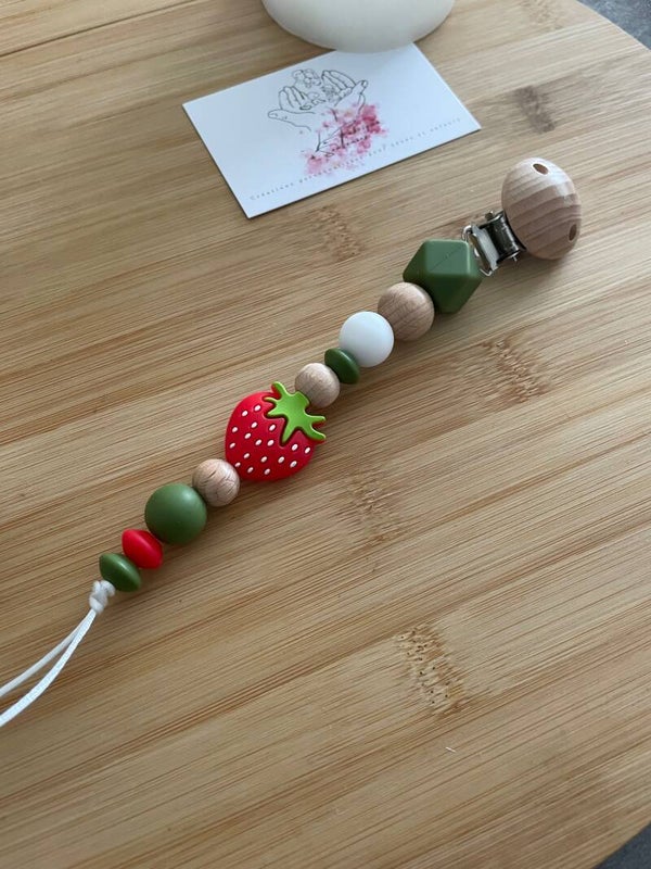 Joli attache tétine fraise des bois !