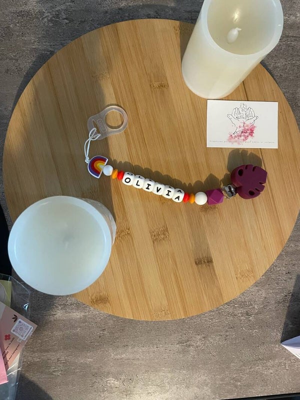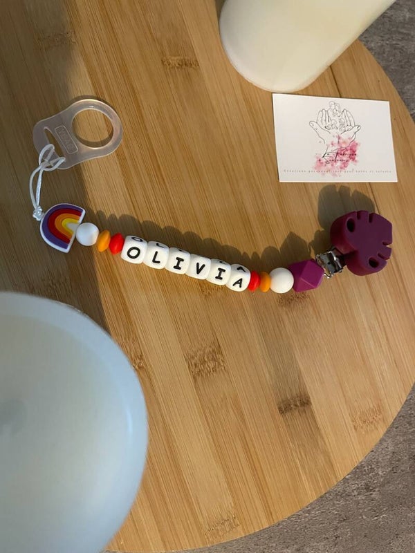 L'attache tétine sert à ne pas faire tomber la sucette, la salir ou la perdre et peut faire un cadeau de naissance unique et original !