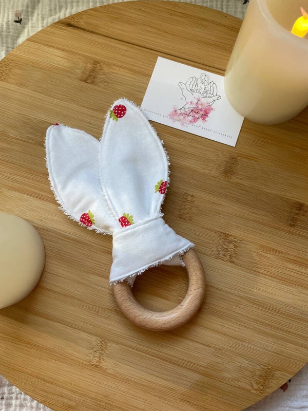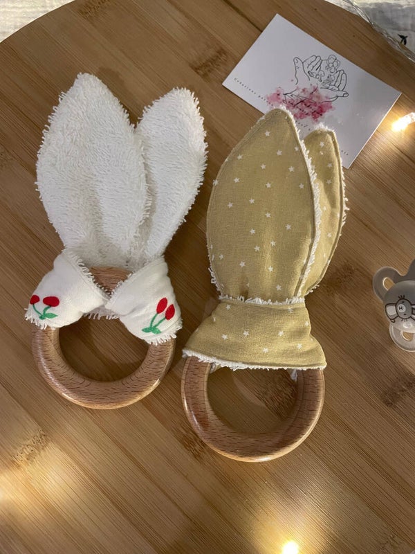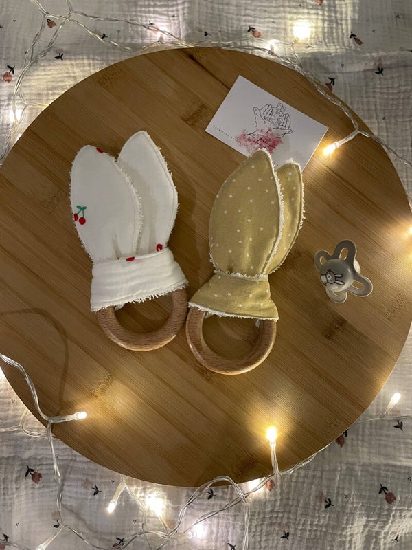 Les oreilles de lapin sont en coton doux et agréable au toucher, parfait pour les petites mains. Le corps du hochet est en bois de haute qualité, soigneusement poli pour éviter tout risque d'écharde, assurant ainsi la sécurité de bébé.