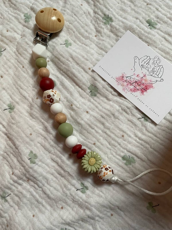 Joli attache tétine fleuri vert !