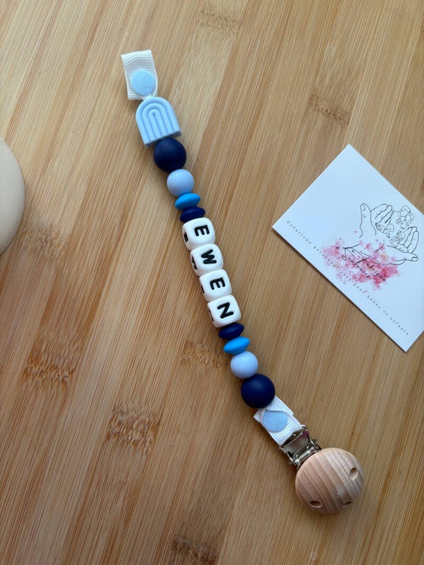 L'attache tétine sert à ne pas faire tomber la sucette, la salir ou la perdre et peut faire un cadeau de naissance unique et original !