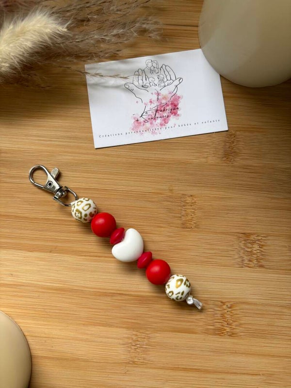 Porte clés fait avec des perles en silicone et/ou en bois.